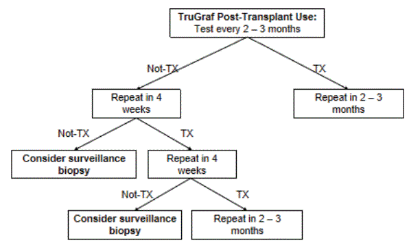 图2:建议在移植后的前5年中使用Trugraf用于肾移植受者。测试频率和结果的临床使用是基于专家意见。TX =卓越的卓越,表明移植肾脏中的免疫静脉;nottx =异常结果。