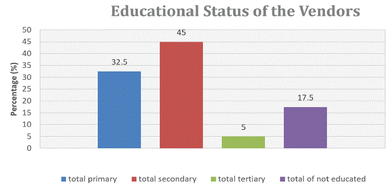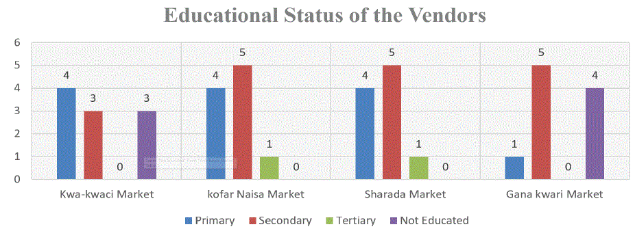 (图6)所列(图6)所示的年龄范围“21-25,31-35,36-40”和“45-50”记录了最高的观察,而年龄为15-25和26-30岁,记录了最低的观察结果。各种供应商的年龄可能在蔬菜污染的传播中发挥作用,因为年轻人和老人可能会抵制蔬菜的正常洗涤方案[8]。然而,供应商的居住地(图7)也可能在增加或减少这些蔬菜的污染水平时发挥作用。在供应商的教育状况,图8和图9展示了这些类别,其中四个市场中的每一个都记录了不同的供应商的不同年龄。但是,45%的供应商处于次级阶段,这可能导致蔬菜的未否否否核心条件,这表明可能的污染方法是可能的手段。在显示器的情况下,所有市场都揭示了所采用的未透明展示装置的警报水平(在地面上放置在地上的样品,并揭示的样品)。这些,表示可能的污染这些蔬菜的方法。在医学上重要寄生虫传播中有贡献的大部分因素与差的健康,环境,食物和水污染以及其他差的个人卫生卫生实践直接相关[3]。这些因素确实是许多发展中国家欠发达的严重挑战,特别是在非洲,寄生食物和水的寄生污染普遍存在的普遍存在[8]。然而,在寄生虫感染之后,许多因素对其疾病表现发挥作用。 Conversely, not all parasitic infections cause disease of clinical significance. Both parasitic factors (Strain of parasite and adaptation to a human host, parasite load, Site(s) occupied in the body and metabolic processes of the parasite particularly the nature of any waste products or toxins produced by the parasite) along with the host factors (Genetic factors, Age and level of natural immunity, Intensity and frequency of infection, Presence of co-existing disease or condition which reduces natural immune responses, e.g. pregnancy, or infection with HIV, whether there is under nutrition or malnutrition, Life style and occupation) plays an important role for the onset of the disease [21].