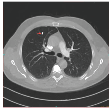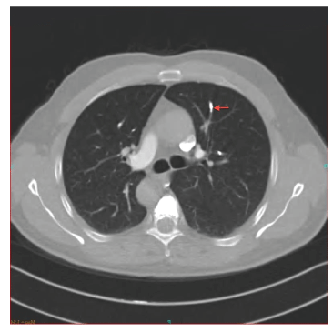 骨水泥从椎旁静脉漏入肺血管循环是肺栓塞的主要来源。骨水泥栓塞的发生率为3.5-23%,椎体成形术后骨质疏松性骨折的发生率增加。另一方面,有一组文献报道,尽管发现水泥渗漏进入静脉系统[12],但没有发生水泥肺栓塞的病例。临床上栓塞可有症状或无症状。症状通常是呼吸困难,呼吸急促,心动过速,发绀,胸痛,咯血,但大多数患者可以完全无症状或轻度症状可出现在手术过程中或术后一段时间。在临床实践中,患者出现症状的发生率低于1%。术后胸部x线检查通常发现肺水泥栓塞为分支放射密度影,即使在临床上无症状的病例[9]。CT血管造影、通气灌注闪烁、超声心动图及肺弥散能力可进一步诊断栓塞[5]。目前对骨水泥栓塞尚无标准化的治疗方法。治疗建议与减少血栓形成、肺梗死和呼吸衰竭[9]有关。 Localization, size of emboli also severity of the symptoms is effective on deciding the treatment choice [13,14]. Suggested treatment for symptomatic central orperipheral lesions is first intravenous heparin or LMWH after that warfarin or LMWH at least 3-6 months [13,14]. For severe symptomatic patients as in respiratory failure, embolectomy should be the first choice [14]. Anticoagulation may not reverse all cement emboli lesions but it is revealed that PMMA may lead to endothelial dysfunction and have prothrombotic effects that can result as additional thrombosis [15], so anticoagulation is essential to avoid from additional thrombosis or progressive occlusion of the pulmonary arteries. In elderly population continuous treatment after six month is not suitable because of the bleeding complications and side effects of the anticoagulation [6]. In the long term follow up patients may stay asymptomatic despite the consisting embolism.