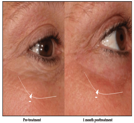 下眼睑皮肤松弛和皱纹是光老化的常见表现。它们通常出现在眼睑上的时间早于相邻面部皮肤。脉冲公司2激光已被证明可以紧致松弛的皮肤并减少眶周区域的皱纹。以前的研究表明,这种改善是由于组织加热效应,即蒸发细胞内的水,烧蚀上层组织,使底层组织变性,并诱导下层胶原蛋白收缩。治疗后皮肤紧致是由于治疗组织愈合时,下层合成了新的胶原蛋白。