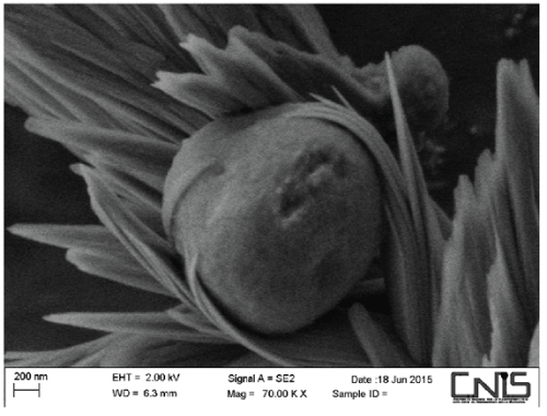图5:扫描电镜下木质素微纳米颗粒被薄的聚乙二醇电晕覆盖