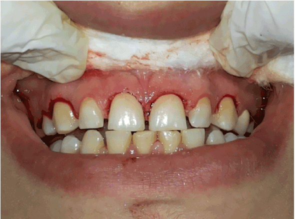 图2:上中央和犬齿的牙龈切除术