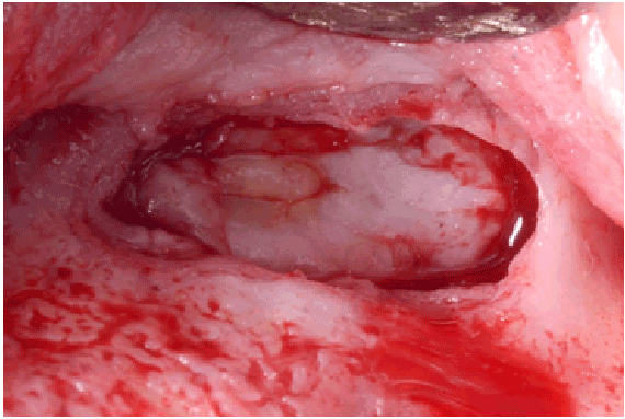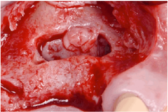 许多作者对窦膜穿孔进行了分类。Fugazzotto和Vlassis[12]根据射孔位置和范围提出了五类分类。2007年Hernandez等人提出了另一种针对射孔孔径[11]的分类。他们将穿孔分为3类,小(<5毫米),中(5-10毫米)和大(>10毫米)。大射孔似乎是最具挑战性的;因此,文献中描述了几种管理它们的技术。流产手术而不进一步操作受伤的膜是一种选择[13]。另一方面,一些作者提出了膜穿孔时的修复方案[14,15]。然而,这些方案可能会增加手术的长度,因为鼻窦膜由于厚度低而难以处理。在本案例系列中,该技术包含两阶段方法。 The purpose of this protocol is to simplify the management of perforated membranes (>10 mm) and to ensure their reparation before grafting. Once a large perforation occurred, decision was made to stop further elevation of the membrane. After a 3 to 6 weeks delay, completion of the SAP was achieved during re-entry surgery. This time frame has been reported as the required period for the soft tissue to heal [16-18].