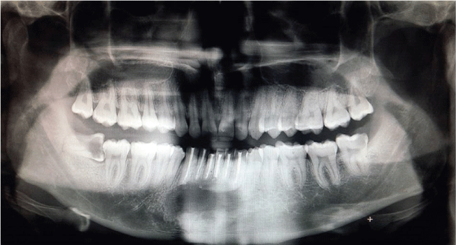 根囊肿在上颌骨引起颊部和腭部扩张,而在下颌骨只引起颊部扩张,很少引起舌部扩张。它还会引起牙齿移位和骨吸收,并延伸到软组织,很少引起牙齿吸收和神经感觉异常[6]。在下面的病例报告中,我们讨论了通过摘除、根尖切除术和MTA根端逆行充填成功治疗大根囊肿的方法。