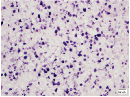 图3:病理切片显示EBER阳性NK/ t细胞。