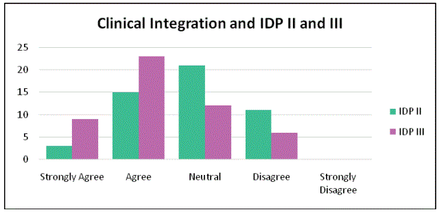 总体而言,当被问及在第二学年之前教导的IDP II课程中提供的信息时,有助于他们融入临床环境,36%的受访者同意。其中64%的人同意,IDP III课程的信息更接近诊所的开始,有助于临床一体化(图2)。二十两次受访者(44%)表示,讲座与他们在诊所的方法如何相似,而13名受访者(26%)表示他们是相似的。