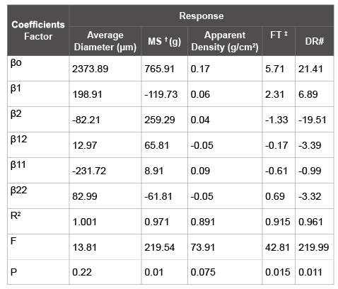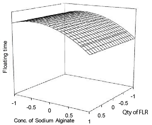 低密度多孔载体已被研究人员用于制备FDDS[3,4]。多孔载体是具有开孔或闭孔结构的低密度固体,为载药提供了大的暴露表面积。它们的疏水性不同,从完全亲水性的载体,可以立即分散或溶解在水中,到完全疏水性的载体,可以在水中漂浮数小时。多孔载体由于其广泛的用途,在药物中有多种用途;其中包括新型药物输送系统的开发如浮动药物输送系统,持续药物输送系统;提高难溶性药物的溶解度;酶固定化等[5,6]。药物开发的多孔载体的例子包括多孔二氧化硅(Sylysia)®)、聚丙烯泡沫粉(Accurel®)、多孔硅酸钙(Florite®)、镁铝硅酸盐(纽斯林®)、多孔陶瓷等。Florite再保险®(FLR)为多孔硅酸钙[2CaO·3SiO2·mSiO]2·nH2O (1 雷诺拉嗪是一种抗心绞痛药物,于2006年获得美国FDA批准。作为缓释片上市(雷尼莎500 mg/1克)。雷诺拉嗪在肝脏中广泛代谢,吸收变化很大。雷诺拉嗪的表观终端半衰期为7小时。雷诺拉嗪在胃中pH较低(pH 1.2 - 3)时具有较高的溶解度(在0.1 N HCl中溶解度为42.08 mg/ml)。雷诺拉嗪的高酸溶性使得药物吸收和清除迅速,导致血浆中雷诺拉嗪浓度的大而不良的波动和作用时间较短。因此,需要经常口服给予足够的治疗[10-13]。 本研究的目的是开发一种多孔硅酸钙(Florite RE .)多颗粒悬浮给药系统®)和海藻酸钠为雷诺拉嗪的定点释药。采用快速溶剂蒸发法将药物吸附在floite (FLR)上制备载药微球,并利用32的阶乘设计。对开发的配方进行了产量、包封效率、图像分析、表面形貌、机械强度、表观密度、浮力研究和溶解研究。 Ranolazine和海藻酸钠由印度Zuventus医疗保健有限公司生产。Florite再保险®(FLR)是德山株式会社(日本山口)赠送的。所有其他化学物质都是分析级的。 将称量准确的雷诺拉嗪(375 mg)溶于甲醇中,置于250ml圆底烧瓶中,摇匀后将FLR (187.5 mg)分散;随后甲醇在真空旋转蒸发器下蒸发。采用离子致凝胶法制备空白微球和载药微球。将药物吸附的FLR粉末(1:1 .5比例)加入25 ml海藻酸溶液中搅拌,使其分散均匀。将获得的分散体通过18G (1.2 mm直径)的针滴(4ml /min)挤压到10%的氯化钙溶液中,得到凝胶珠,在搅拌下在氯化钙溶液中保留30分钟。经过滤后,于37℃±5室温下干燥24 h2采用析因设计研究海藻酸钠和氯化钙对载药微珠[14]特性的影响。 以32析因设计。FLR (X1)用于吸附雷诺拉嗪和海藻酸钠(X2)作为两个自变量。从对每个变量的初步研究中选择了三个水平,并使用不同水平的变量制备了9个可能的批次0,β1,β2,β12)与各因素的作用及相互作用有关。 Y =β0+β1X1+β2X2+β11X21+β22X22+β12X1X2(1) 在β09个批次的算术平均反应是β吗1和β2因子X的系数1和X2和β12X的相互作用系数1和X2.(X的交互1X2)显示当两个或两个以上因素同时发生变化时,因变量是如何变化的。 将称量准确的珠子溶解在100毫升0.1 N HCl中,通过膜过滤器(0.45µ)过滤。滤液稀释后用271 nm分光光度计(日本JASCO V500)测定。 捕集效率的计算公式为: $ $ {\ rm{截留效率=}}{{{rm \{实际药物含量珠}}}\ / {{\ rm{理论药物含量珠}}}}{\ rm {X 100 }}...........{\ rm {(2)}} $ $ 载药微珠的外部形态通过扫描电子显微镜(Stereoscan S120, Cambridge, UK)测定。样品安装在双面胶带上,并用溅射涂层装置(VG-Microtech, Uckfield, East Sussex, UK)涂上薄薄的金钯层,并在500X下分析表面形貌。用立体显微镜(日本奥林巴斯BH-2型)测定小球的平均直径和不同形状因子,如循环因子和圆度。 用压汞传感器[14]法测定了每批样品中5颗微珠的抗压强度。 确定浮动时间,珠子(20)被浸泡在900毫升0.1 N USP II型的盐酸溶解装置(Elecrtrolab、孟买印度)下的8小时搅拌(100 rpm)为37.5±0.5°c,在选定的时间间隔,搅拌停下来了珠子的数量是2分钟。 使用装有内部冷却器的梅特勒-托莱多DSC 821e(瑞士)仪器,获得雷诺拉嗪、安慰剂床和载药小球的差示扫描量热图。采用铟标准对仪器进行DSC温度和焓值的标定。样品密封在穿孔铝锅中,在0-200°C的温度范围内以10°C/min的恒定速率加热。用氮气以100 ml/ min的速率净化系统,以保持惰性气氛。 用x射线衍射仪(PW 1729, Philips, Netherlands)研究了纯雷诺拉嗪、空白和载药微珠的结晶性能。用单色Cu Kα辐射(1.542 Ǻ)辐照样品,在2θ下5°~ 50°进行分析。使用的电压为30 kV,电流为30 mA。量程和航速均为2 × 103.CPS和10毫米/度2θ分别。 采用Jasco V5300傅里叶变换红外光谱(FTIR) (Jasco,东京,日本)对药物、FLR、海藻酸钠和载药微球样品进行红外光谱分析。用样品和KBr按~1:10的比例混合,在KBr压力机(Spectra Lab, Mumbai, India)上制备微球。谱记录在4000 ~ 400 cm−1的波数范围内。 使用USP II型溶出试验仪(Electrolab, Mumbai, India)在0.1 N HCl中进行载药微珠的溶出研究。将相当于100mg药珠的药物放入900 ml溶出介质中,用旋转桨以100 rpm搅拌溶出介质,温度调至37±0.2℃,在选定的时间间隔内取出样品,更换新鲜溶出介质。然后样品通过Whatman滤纸过滤,用271 nm紫外分光光度计(JASCO-V500,日本)分析。 海藻酸钙微球由于其高度依赖pH值的肿胀和药物释放特性,为大分子和药物提供了一种简单的多颗粒药物传递系统[15,16]。为了限制体积,FLR的最大吸附量为0.6 g,以吸附375 mg雷诺拉嗪。以0.1-2% (w/v)海藻酸钠溶液和1-5% (w/v)氯化钙溶液为交联介质,对微球的制备进行了初步研究。观察到0.5-2% (w/v)的海藻酸钠溶液中含有375 mg/ml的药物吸附FLR,挤压在1% (w/v)的氯化钙溶液中产生具有瞬时漂浮能力的小球。利用上述配方和工艺参数,尝试获得不含FLR的