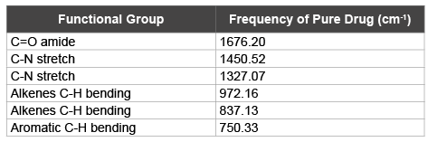 采用傅里叶变换红外光谱(FT-IR)研究了制剂中药物与聚合物的相容性。采用溴化钾圆盘法分别获得了药物单独和配方聚合物的FT-IR光谱,并与纯药物的标准FT-IR光谱进行了比较。