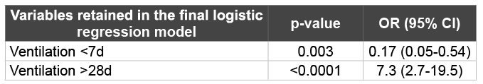 表3:预测BPD或出院前死亡的危险因素的多变量分析