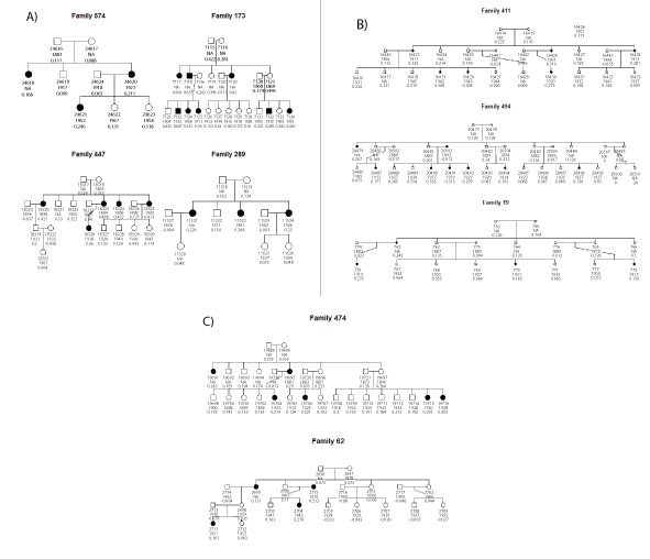 图3:黑色是发病率最高的家庭。病人id和估计遗传加值下面的数字。