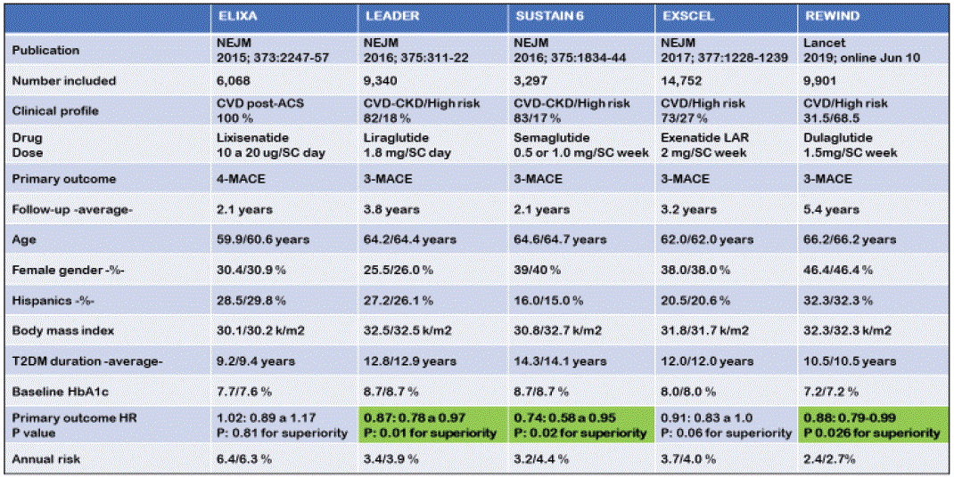 表3:5种已上市GLP1-RAi的cvot的主要特点和结果。