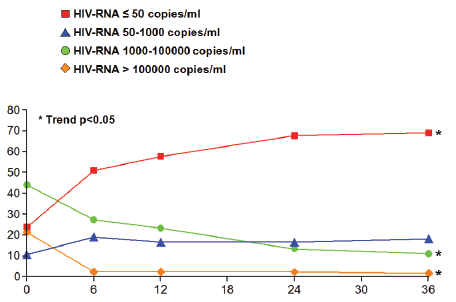 来自非洲和亚洲的患者在第一次到中心就诊时免疫功能最弱(数据未显示),而79.8%的移民有阳性病毒血症(≥20拷贝/ml)。