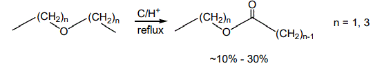 在酸化木炭存在下,THF转化为GBL,回流超过24小时后,产物具有较高的产率和纯度。在六元环醚、四氢吡喃上也出现了类似的结果。