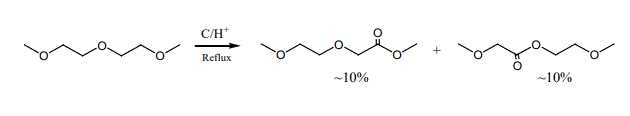 均相硫酸不可避免地催化醚生成烷基硫酸氢,然而,我们发现非均相碳和浓硫酸混合物会导致不同的结果。醚上与氧相邻的碳被氧化成羰基,没有任何其他副反应(图1)。