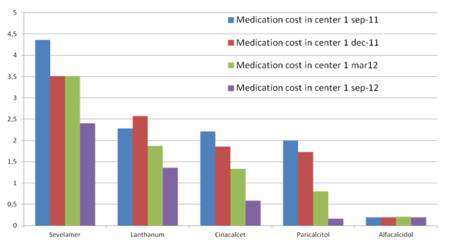 每名患者每天服药多动症的成本是使用药物的平均每日剂量和患者群体目前平均计算。在成本分别为1,35欧元司维拉姆,对于镧,2,46欧元氧化镁0,07欧元0,9欧元钙的每克在calciumacetate(无论是在Phoslo或Osvaren的计算中使用每克成本),用于在碳酸钙的钙每克,欧洲6,7 30毫克的西那卡塞,0.25微克alphacalcidol和0,16欧元5微克帕立骨化醇26,2欧元0,5欧元。