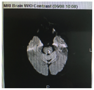 磁共振成像(MRI)/磁共振血管造影(MRA)显示左侧脑桥梗死累及外展神经运动核区域。这一结果导致误诊(图4)。