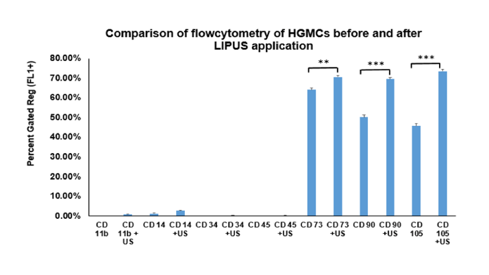 图2:LIPUS应用前后HGMCs的流式细胞术比较。** = p <0.005, *** = p <0.001。