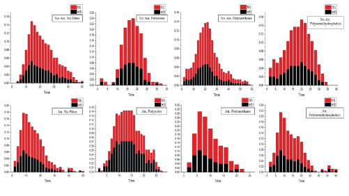 E(t)的值随时间的增加而增加,但在特定的时间内。实验半衰期结束后,E(t)又开始下降,本实验得到的E(t)最大值在时间持续的中间点。因此,在不同的生物填料床存在的不同地方,分子在反应器中的剩余时间不同。同样,用这种方法,我们可以在这一项的帮助下计算它们。